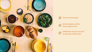 Ihminen käyttää keskimäärin 110 tuntia vuodessa arkiruoan kokkaamiseen. Näin ollen viisikymppiset ovat käyttäneet siihen elämästään reilusti yli 3000 tuntia ja iäkkäämmät jopa tuplasti tuon määrän. Olisiko meidän nyt aika tehdä kotiruoka puolestasi? Sinulle jää vain lämmitys.