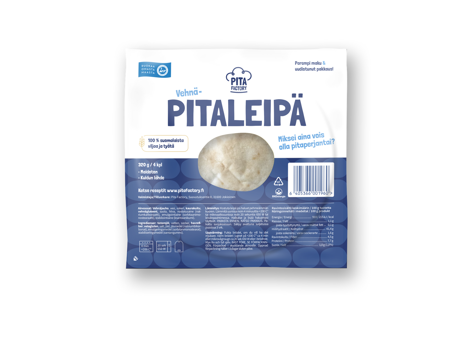 Yksi 320 gramman pakkaus sisältää 4 pitaleipää. Tilaa täytteet erikseen. Tsekkaa valikoimamme parhaat pitatäytteet täältä.